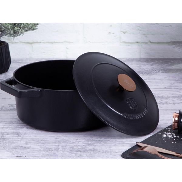 BerlingerHaus BH6491 е тенджера от масивен чугун, съчетаваща класически дизайн с модерна функционалност. С капацитет 2.75 литра, тя е идеална за приготвяне на разнообразни ястия. Чугуненият материал осигурява равномерно разпределение и задържане на топлината, което води до по-ефективно готвене и спестяване на енергия.