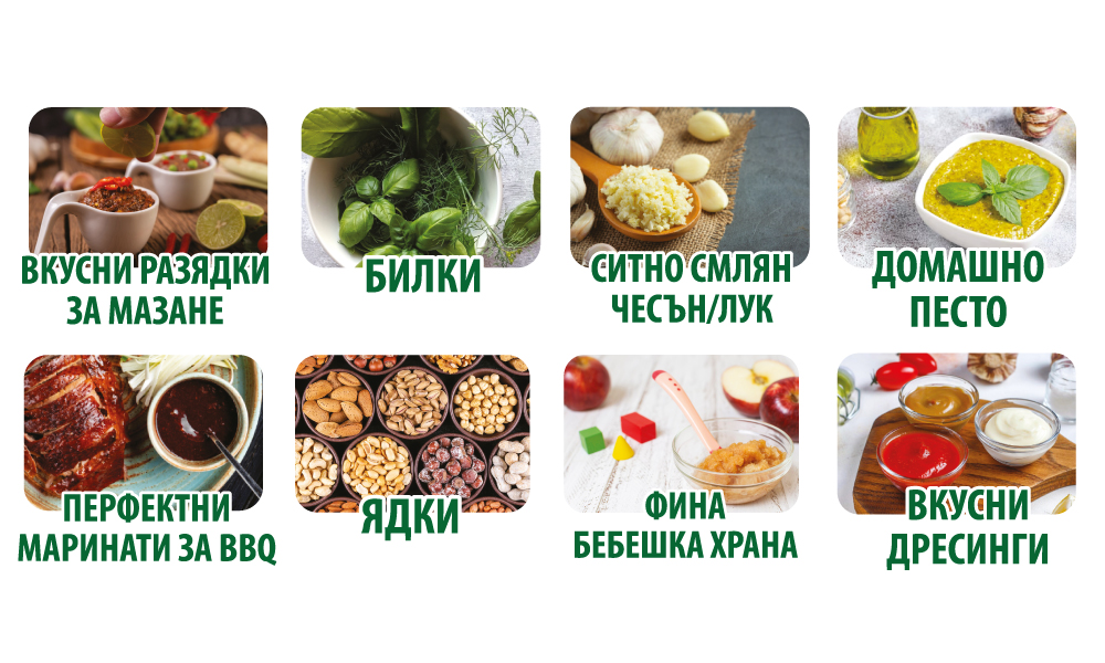 - Спестява време при ежедневната подготовка на продукти
