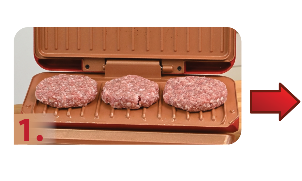 No Fat Grill, 1000 W – двустранно печене + 15° наклон за оттичане на мазнината в тавичката. По-малко бъркотия, по-бързо готвене, по-леко меню през януари.