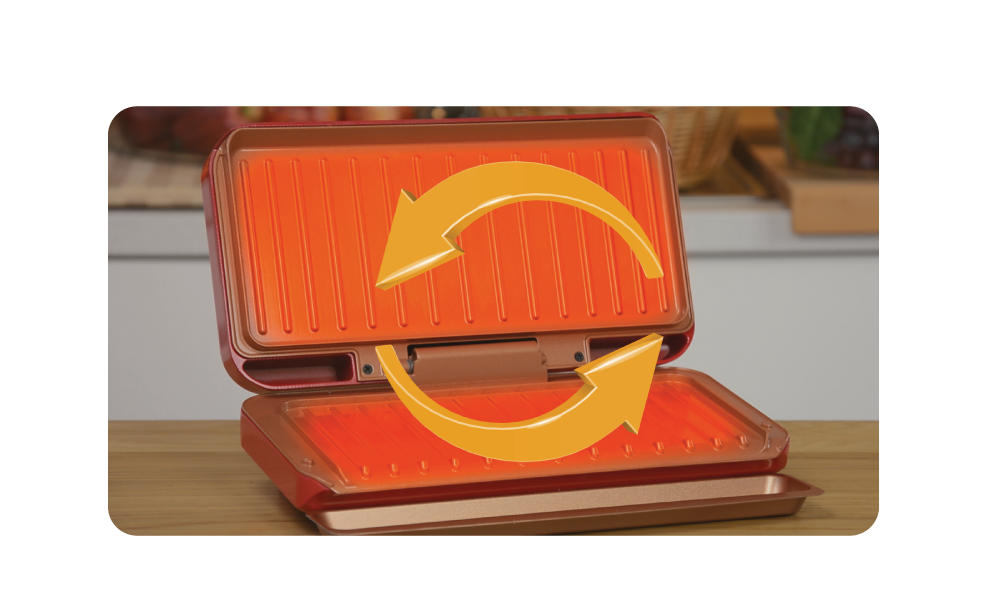 Двата нагревателя изпичат равномерно от двете страни, така че не стоите над тигана и не „пазите“ храната.