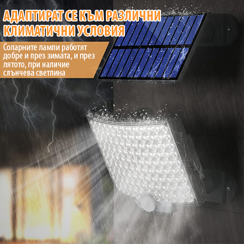 Прожекторът е проектиран да издържа на дъжд, влага и прах, благодарение на защитата си с клас IP64. Идеален е за целогодишна употреба при различни атмосферни условия, без риск от повреда.