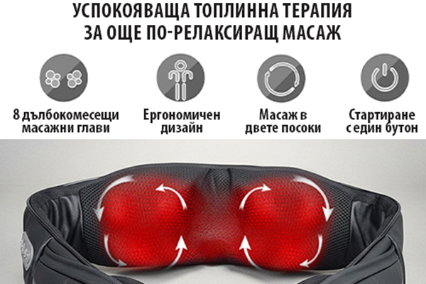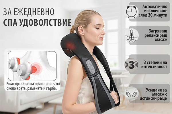 Освен за раменете и врата, масажорът може да се използва и върху гърба, предни коремни мускули, прасци, бедра и седалищна област. Така получавате универсален помощник за релакс и възстановяване – според това къде тялото ви „събира“ стреса.