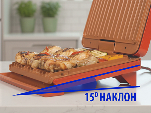 Специалният 15-градусов наклон на плочите позволява излишната мазнина да се оттича бързо и лесно в интегрираната тава, което прави ястията по-здравословни и леки.