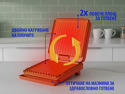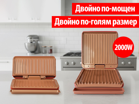 Запази вкуса и намали мазнините за цялото семейство- ДВОЙНО по- мощен и ДВОЙНО по- голям грил!