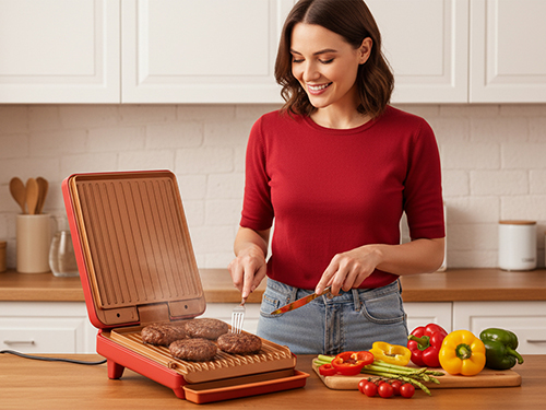 Уникалната двустранно нагряваща технология осигурява равномерно разпределение на топлината, което позволява храната да се готви еднакво добре и от двете страни. Това съкращава времето за приготвяне и ви осигурява перфектни резултати всеки път.