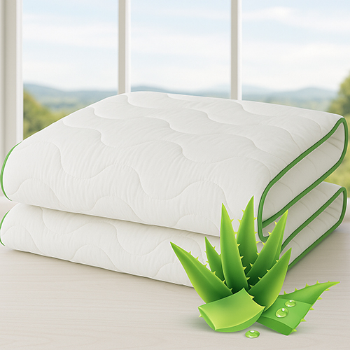 Благодарение на естествените антибактериални свойства на Алое Вера, комплектът осигурява активна защита срещу бактерии, акари и алергени. Алое Вера действа като природен антибиотик, който не само предпазва, но и успокоява кожата по време на сън.