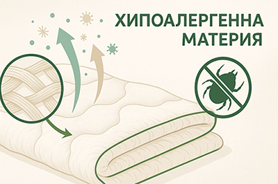 - Изключителен комфорт – мека, дишаща материя и пълнеж с оптимална поддръжка