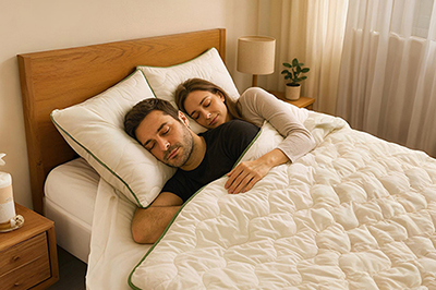 Меката и дишаща структура на микрофибъра в съчетание с висококачествения полиестерен пълнеж осигуряват оптимална поддръжка на тялото. Независимо дали сте по корем, гръб или на една страна – ще се наслаждавате на усещане за лекота и уют през цялата нощ.