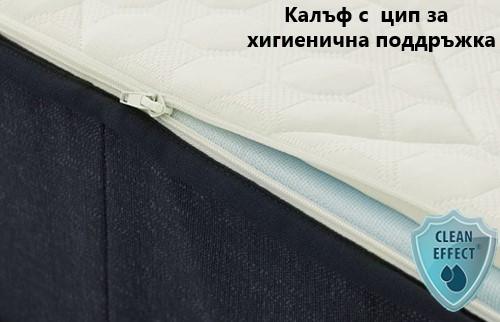 Дишащият матрак, който осигурява достатъчна циркулация на въздуха, е основата за регулиране на температурата и влажността на повърхността за спане, като по този начин я поддържа свежа и чиста. Покритието с технология CleanEffect® осигурява допълнителна защита срещу бактерии, акари и неприятни миризми.