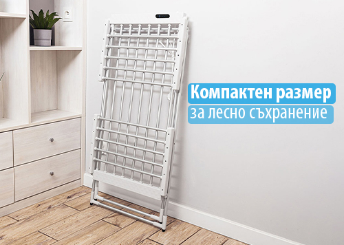 - Сгъваема конструкция с компактен размер – удобна за малки пространства