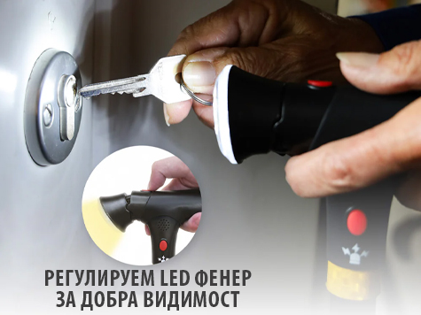 LED фенерчето и алармата работят с 2 батерии тип AAA (не са включени в комплекта).