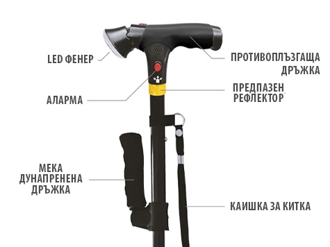Get Up & Go Cane - сгъваем бастун с LED фенер и SOS аларма