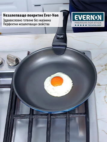 Наслади се на гладко и приятно готвене всеки път с швейцарското ултра-устойчиво покритие Ever-Non – храната не залепва, почистването става за секунди.