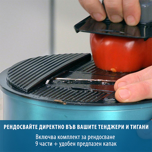 С включения комплект 9 части за рязане и рендосване приготвяш зеленчуци директно в съда – бързо, чисто и удобно.