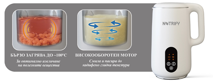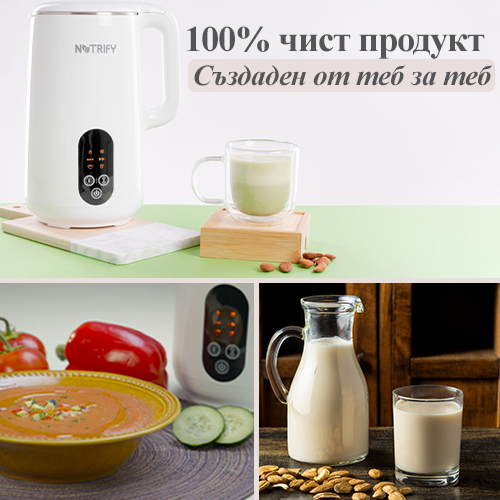 С Nutrify контролираш всяка съставка. Забрави за изкуствените добавки, скритите захари и стабилизаторите в купешките млека. Приготвяй 100% натурални напитки, супи и смутита, създадени от теб – за теб.