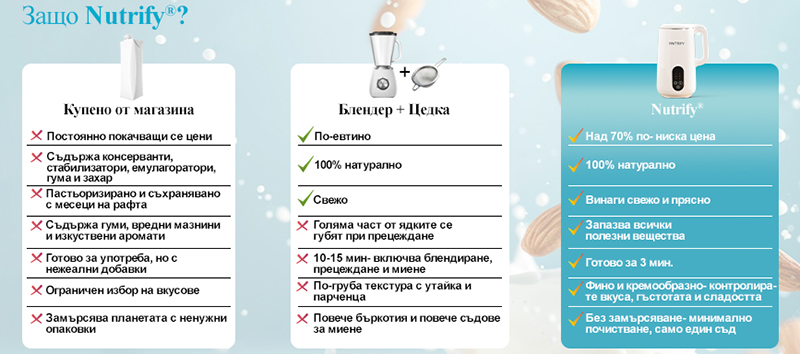 Nutrify – приготви своето свежо ядково мляко у дома. Здравословно. Икономично. Вкусно.