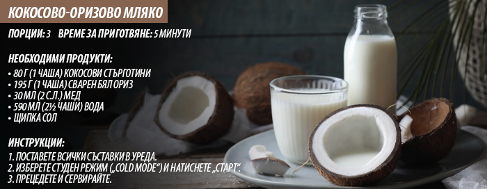 Студен режим – за овесено или кокосово мляко, смутита и протеинови шейкове.