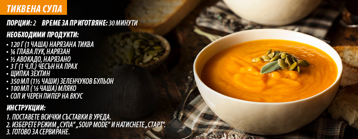 Горещ режим – приготвя соево, бадемово, мляко от кашу и супи с кадифена текстура.