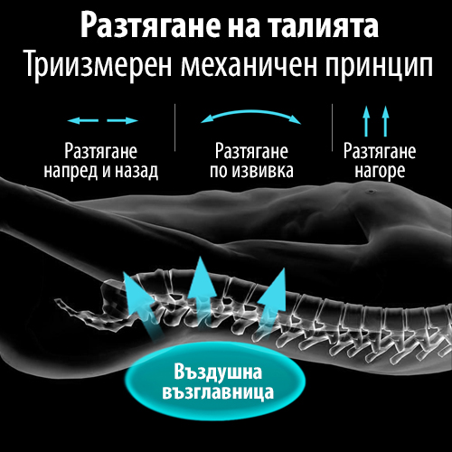Вградената възглавница с въздушна компресия се надува автоматично, прилепва нежно към тялото и разтяга всеки прешлен. Въздушните камери работят последователно – раздуват се и се отпускат, за да ви дарят с усещане за професионален масаж и пълна релаксация. Така облекчават напрежението и болките в ключовите точки – врата, лопатките, гърба.